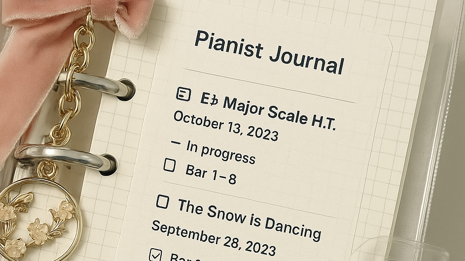 Productivity begins with clarity. After each lesson, students take home a structured practice note that outlines specific tasks for each piece to support consistent progress. This ensures that the role of parents (especially for younger learners) is simply to provide light care and encouragement, instead of intensive coaching.